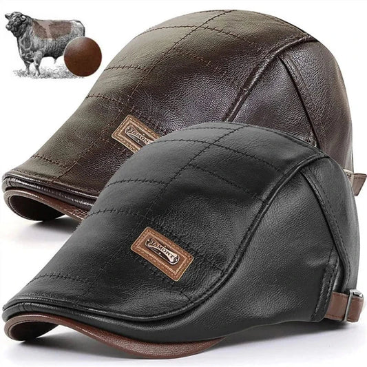 Christopher – Béret d'Hiver en Cuir Synthétique pour Hommes avec Visière