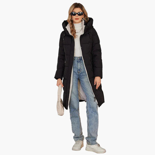 Manteau d'Hiver Long Matelassé à Capuche pour Femme - Style Puffer Élégant et Coupe-Vent