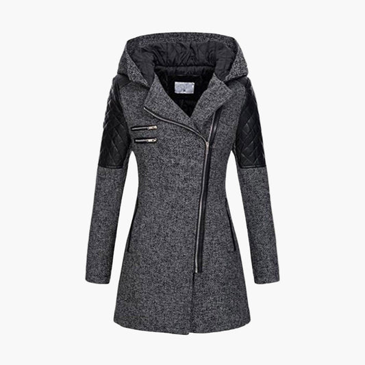 Manteau femme style tweed capuche, élégant et moderne pour l’hiver