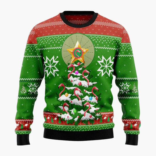 Pull de Noël fantaisie unisexe style "Ugly Christmas Sweater" avec flamants roses et message humoristique