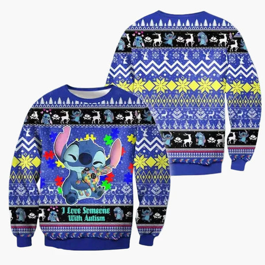 Pull de Noël unisexe style "ugly sweater" Stitch – Motif festif pour fans Disney, idéal fêtes et cadeaux