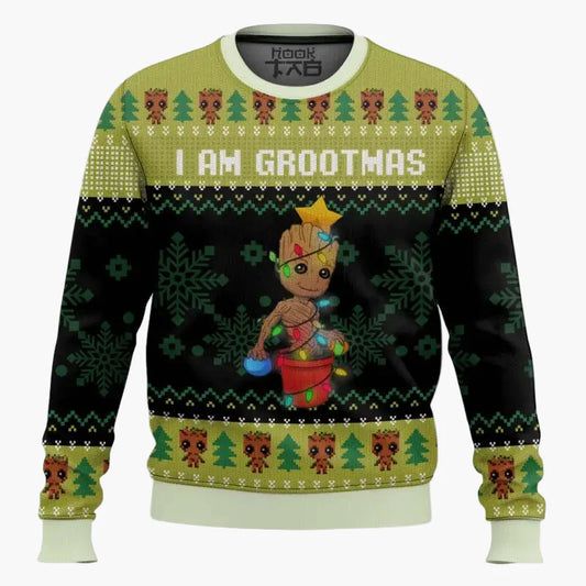 Pull de Noël unisexe style geek "I Am Grootmas" – Sweat-shirt humoristique à motif Baby Groot pour fans de Marvel