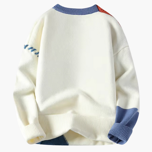 Pull patchwork style créatif pour homme – Pull d’automne-hiver décontracté tendance
