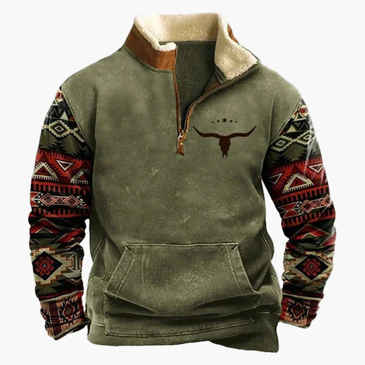 Pull polaire zippé style western pour homme – Sweat à motif ethnique manches longues, look décontracté et chaud