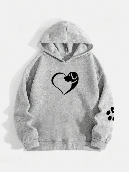 Sweat à Capuche Femme Motif Chien Amour Style Décontracté pour Amatrices de Chiens