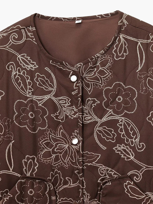 Veste matelassée décontractée femme style floral idéale pour l'automne et le printemps