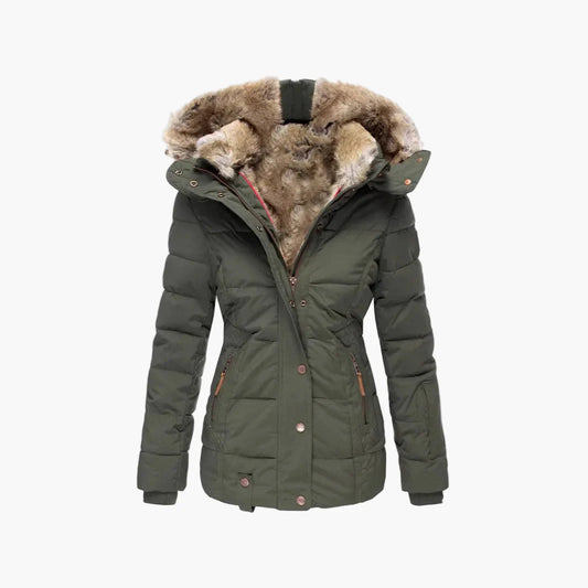 Veste d'Hiver Femme Élégante à Capuche avec Fourrure – Coupe Cintrée et Style Urbain