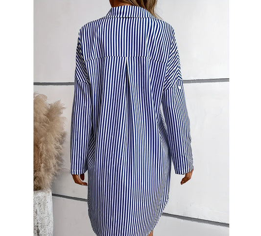 Kate – Robe Chemise Décontractée à Rayures avec Poches