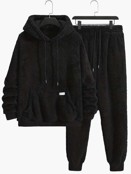 Ensemble décontracté homme sweat à capuche et pantalon style peluche pour l'automne et l'hiver