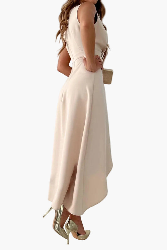Elegant Women's Ceremony Dress Asymmetric Wrap Style V-Neckline