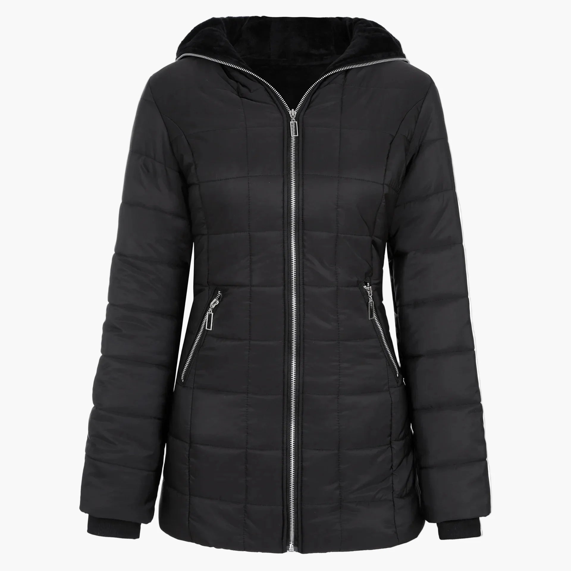 Veste d'hiver femme élégante à capuche style doudoune longue pour temps froid