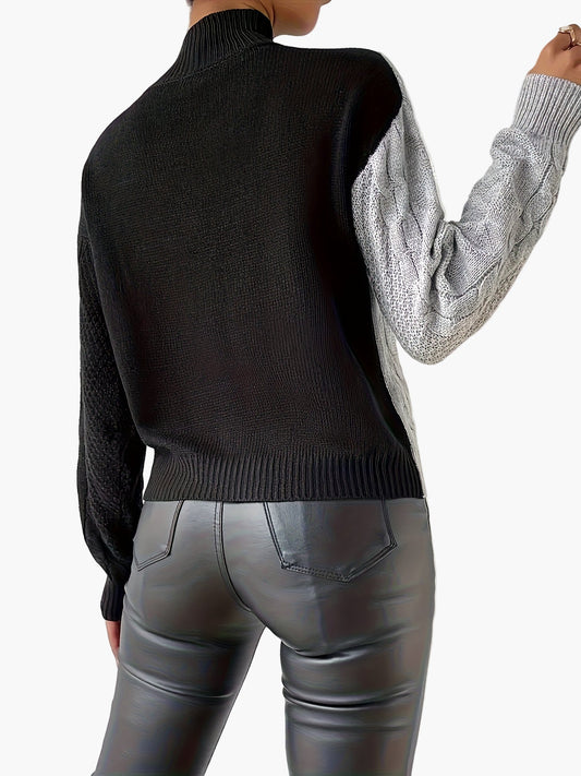Pull-over Femme Style Casual Élégant à Motif Câble avec Fermeture Éclair – Idéal pour l’Automne et l’Hiver