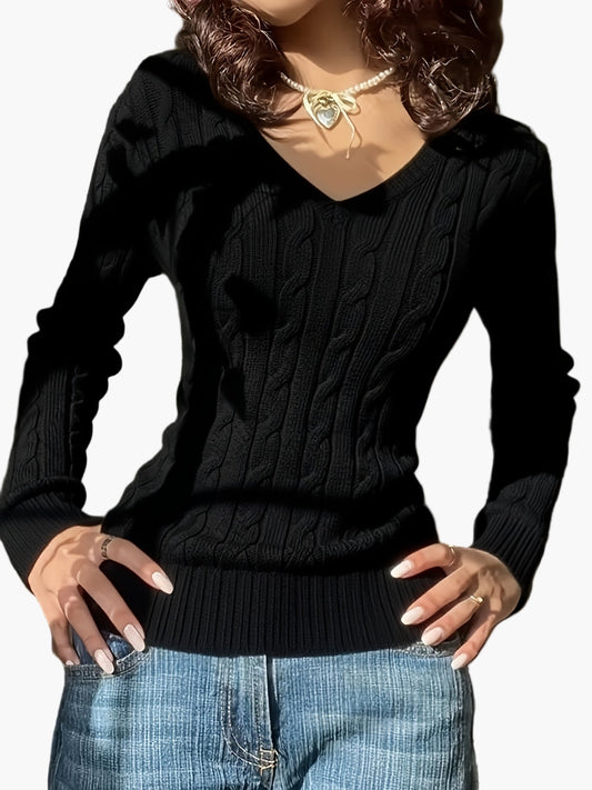Pull Femme Style Casual à Col V et Motif Câble - Élégance Quotidienne