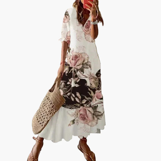 Vestito estivo donna stile bohémien elegante scollo a V maniche 3/4 per un aspetto disinvolto e raffinato