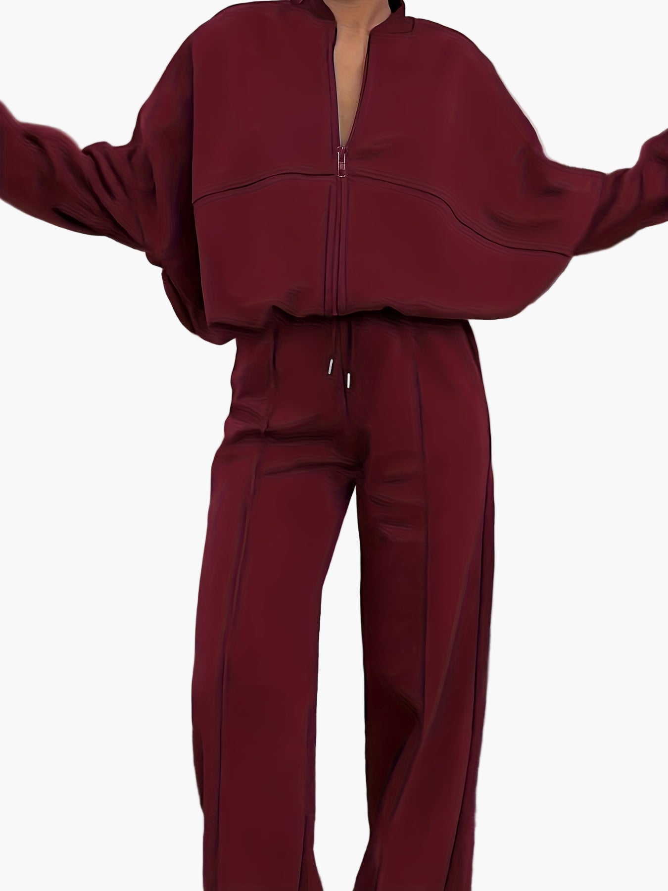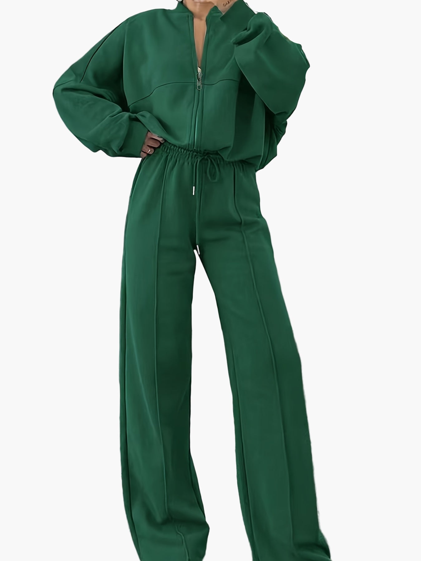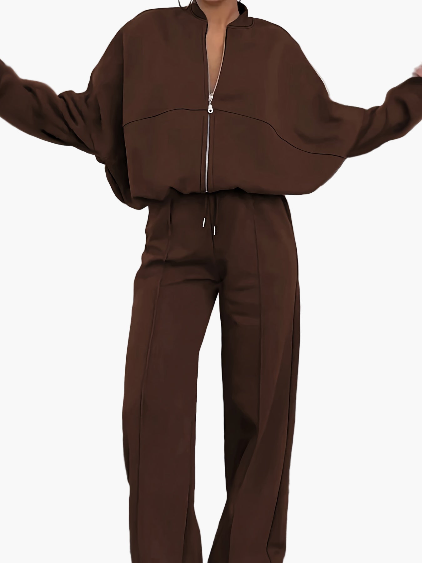 Ensemble décontracté femme deux pièces à fermeture zippée pour loisirs et détente