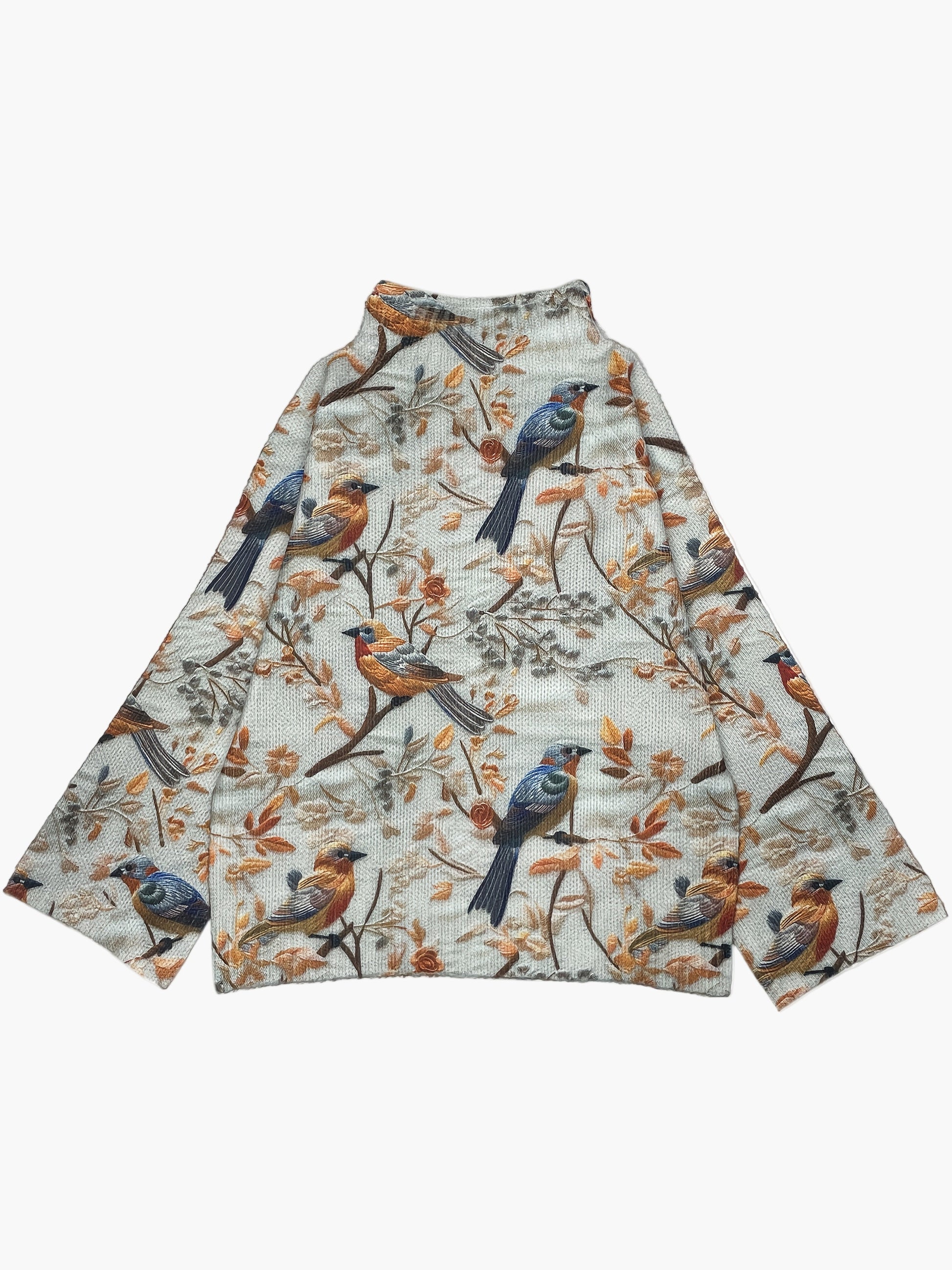 Pull Femme Style Élégant Imprimé Oiseaux Col Montant pour Automne Hiver