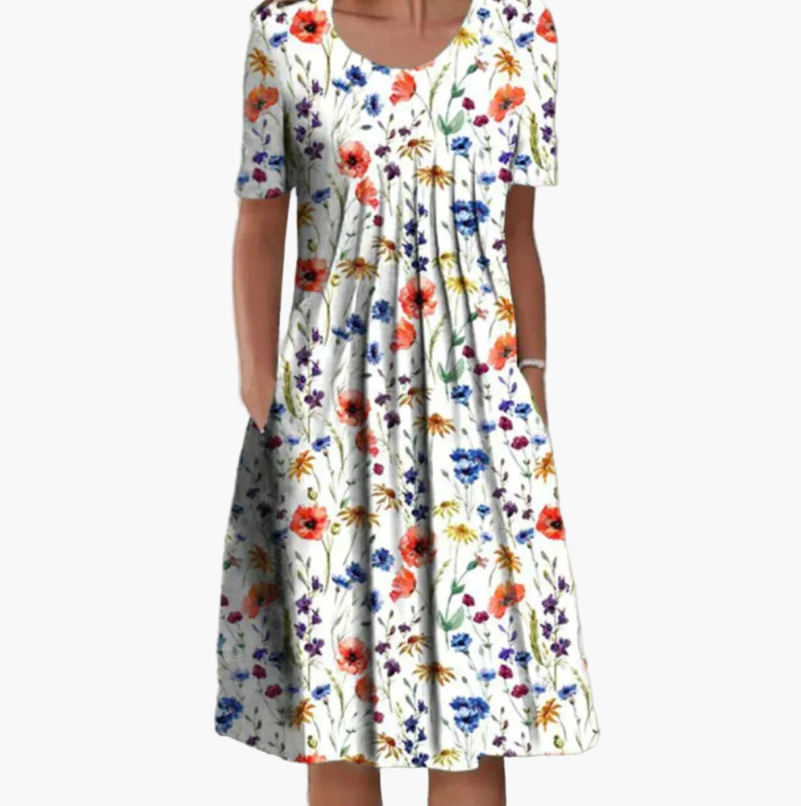 Questo vestito estivo da donna, con taglio midi lusinghiero e stampa floreale vivace, porta un tocco di freschezza e colore al tuo guardaroba. Il design ampio garantisce libertà di movimento e comfort per tutta la giornata, valorizzando la tua silhouette in modo sottile.