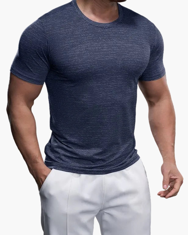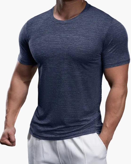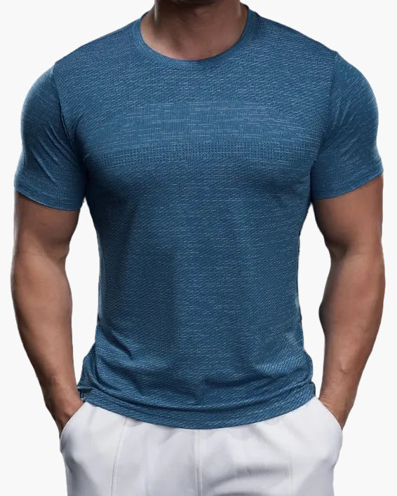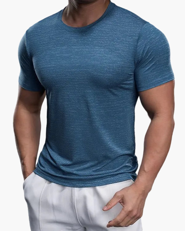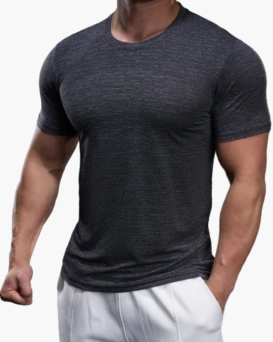 Migliora le tue sessioni di allenamento con questa T-shirt sportiva da uomo, che unisce stile moderno e funzionalità ottimale. La sua vestibilità aderente segue le forme offrendo al contempo totale libertà di movimento, ideale per la palestra, la corsa o le attività quotidiane. Il tessuto leggero a rapido asciugamento mantiene la pelle asciutta anche durante gli sforzi più intensi. I dettagli sottili sul petto e sulle maniche valorizzano la silhouette atletica mentre il classico collo rotondo garantisce il massimo comfort.