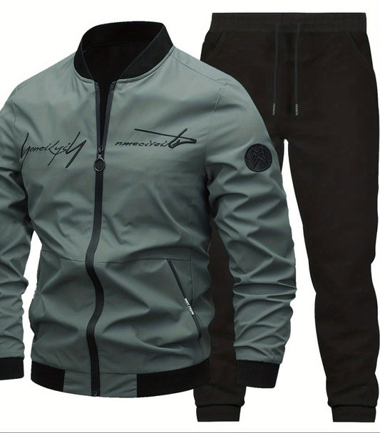 Varsitystijl universiteitsset voor heren, casual sportieve jas en broek, trendy