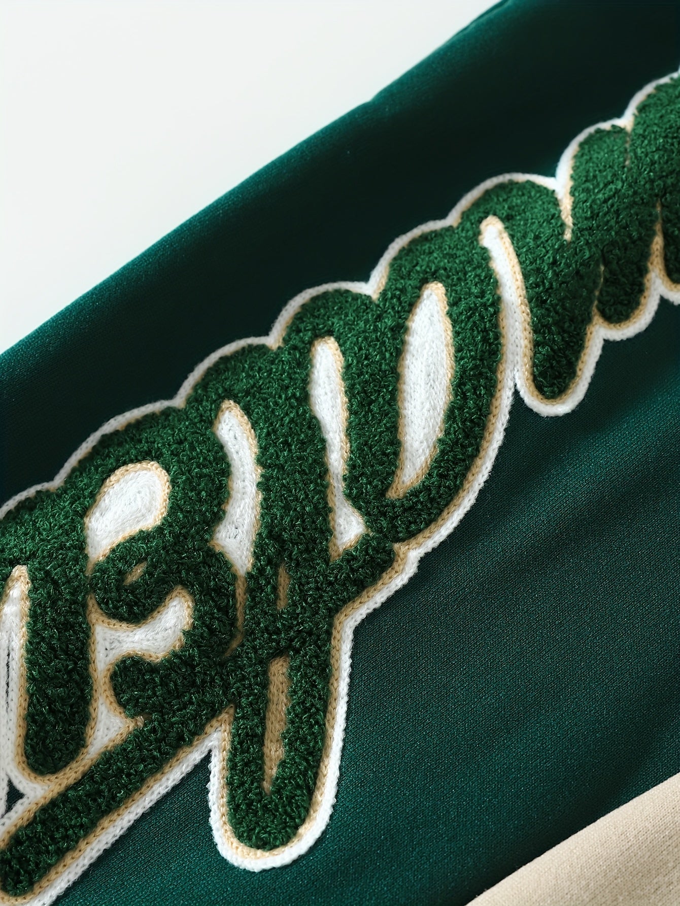 Varsitystijl universiteitsset voor heren, casual sportieve jas en broek, trendy