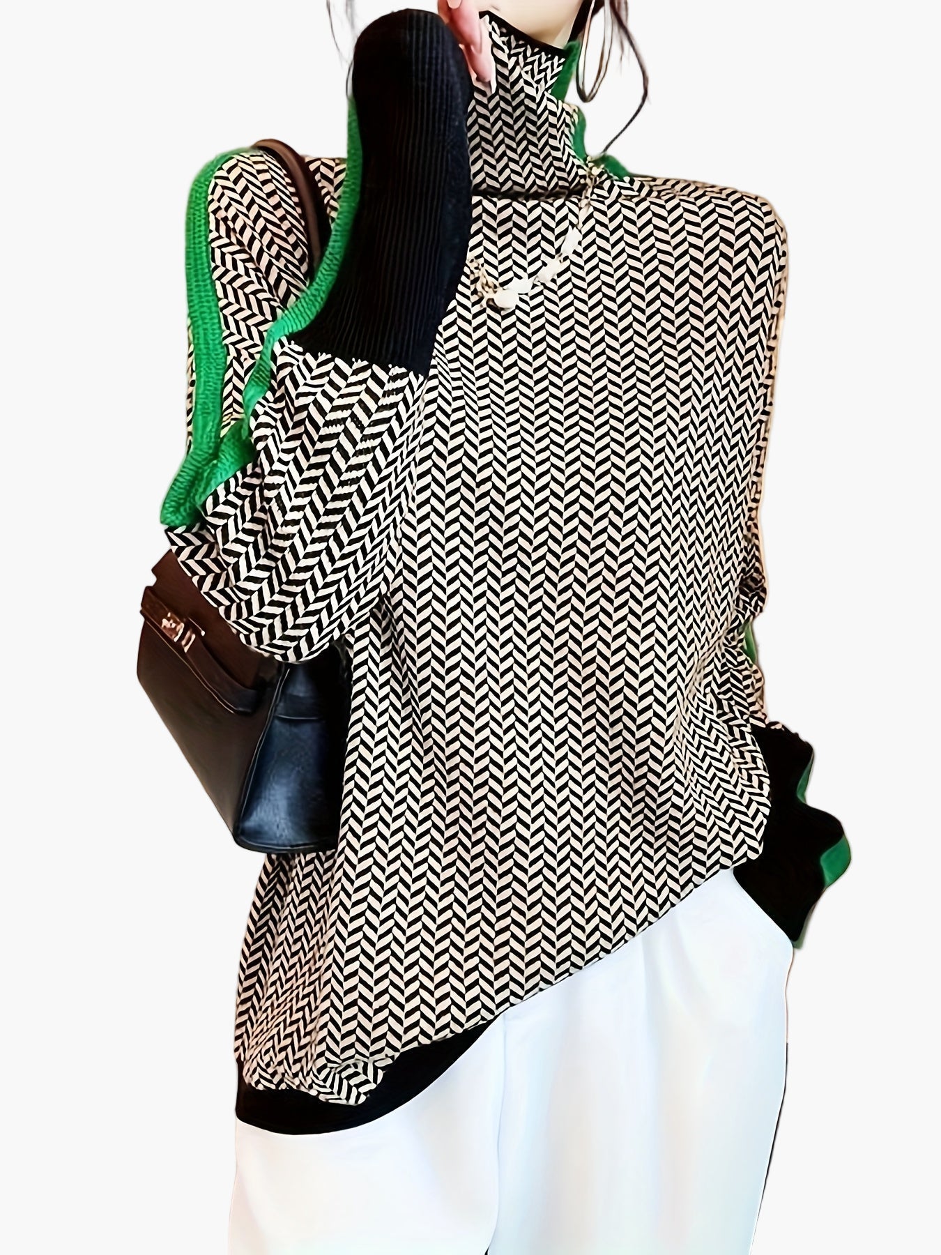 Pull Hiver Femme Col Montant Motif Géométrique Style Élégant Décontracté