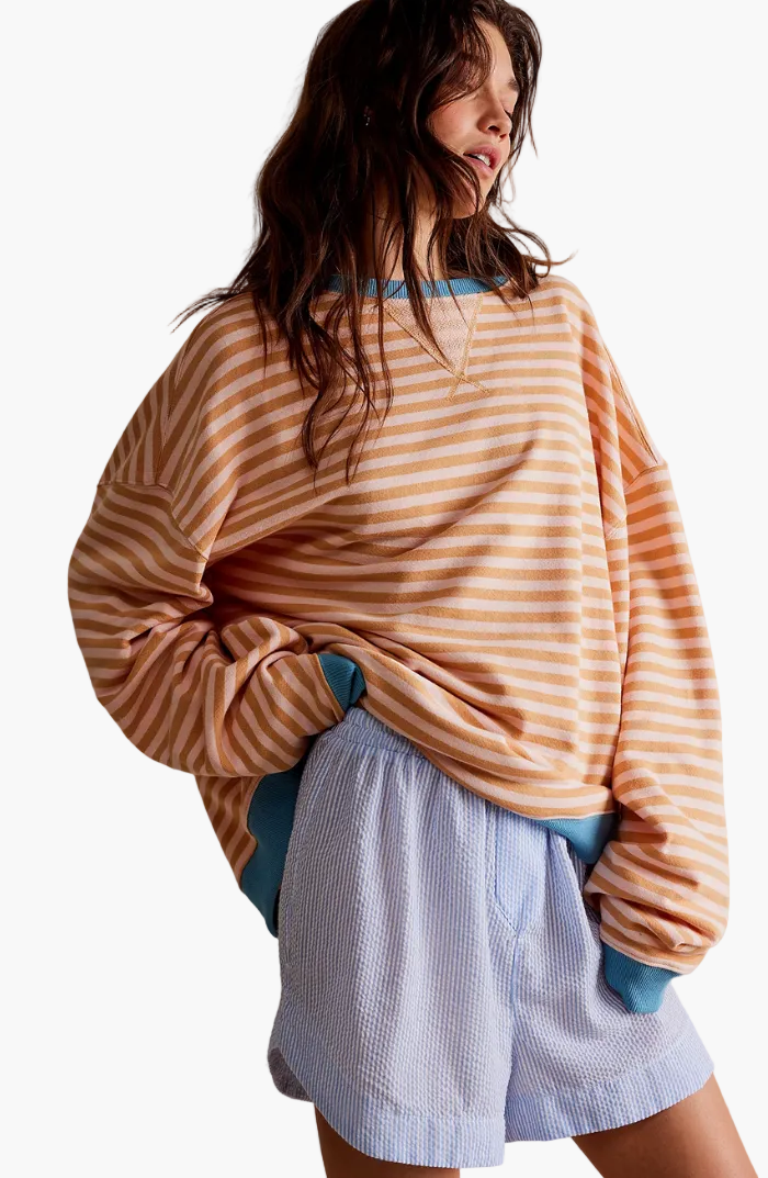 Voeg een vleugje speelsheid en comfort toe aan je garderobe met deze losse gestreepte sweatshirt, perfect voor vrouwen die op zoek zijn naar een stijl die zowel casual als trendy is. Het dynamische streeppatroon geeft een vrolijke noot aan je dagelijkse outfits, ideaal voor ontspannende momenten, uitstapjes in de stad of knusse weekenden.