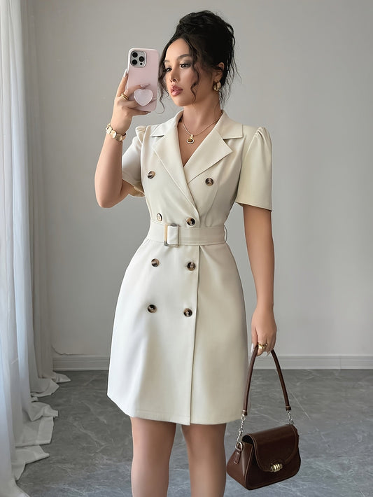 Robe blazer femme élégante à manches courtes style double boutonnage pour bureau et occasions spéciales
