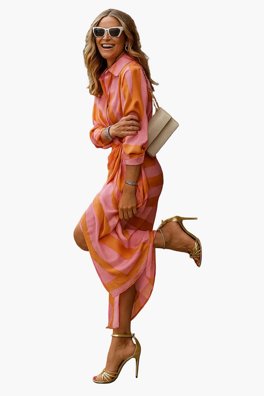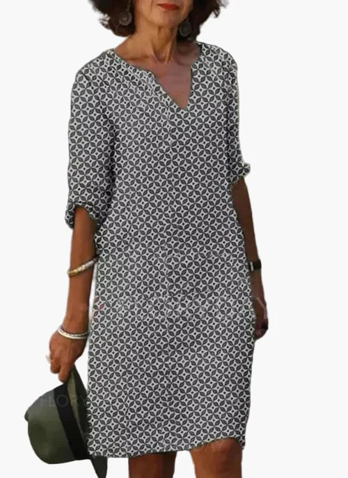 Avslappet sommerkjole for dame med geometrisk mønster og 3/4-ermer – chic og komfortabel