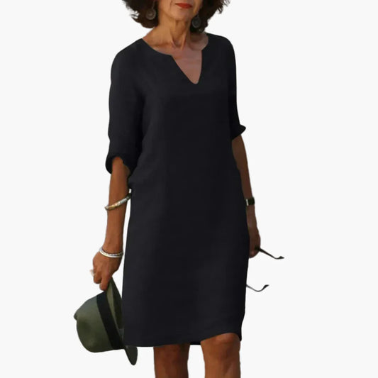 Elegant avslappet kjole til dame med V-hals og 3/4-ermer – Allsidig stil for kontor og fritid
