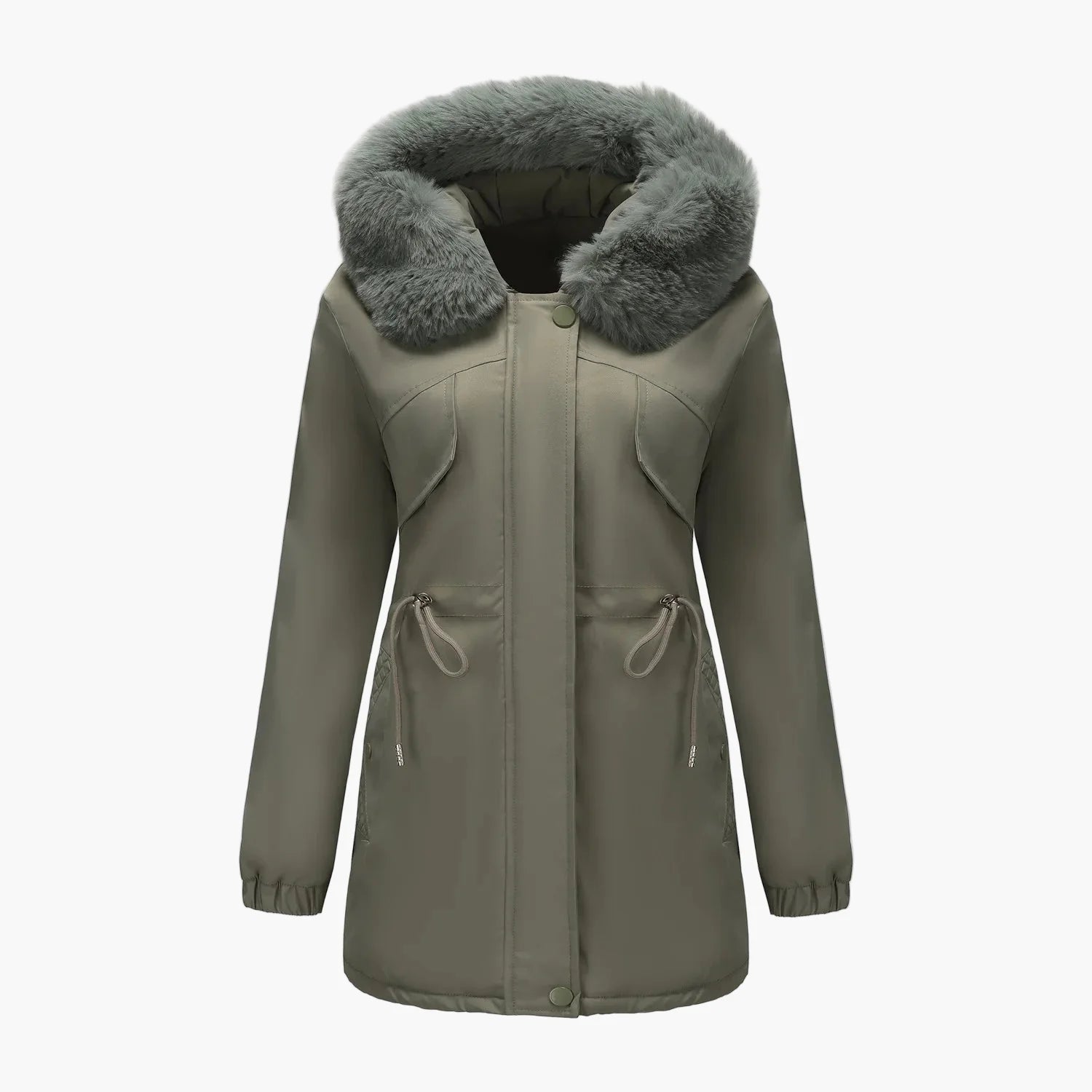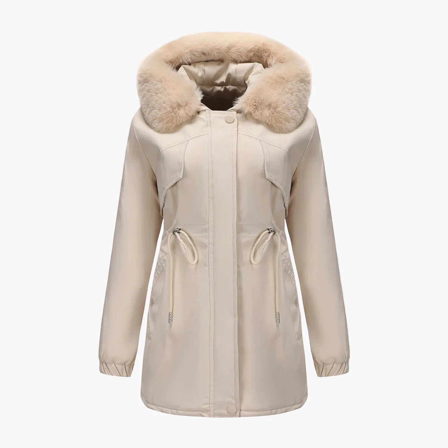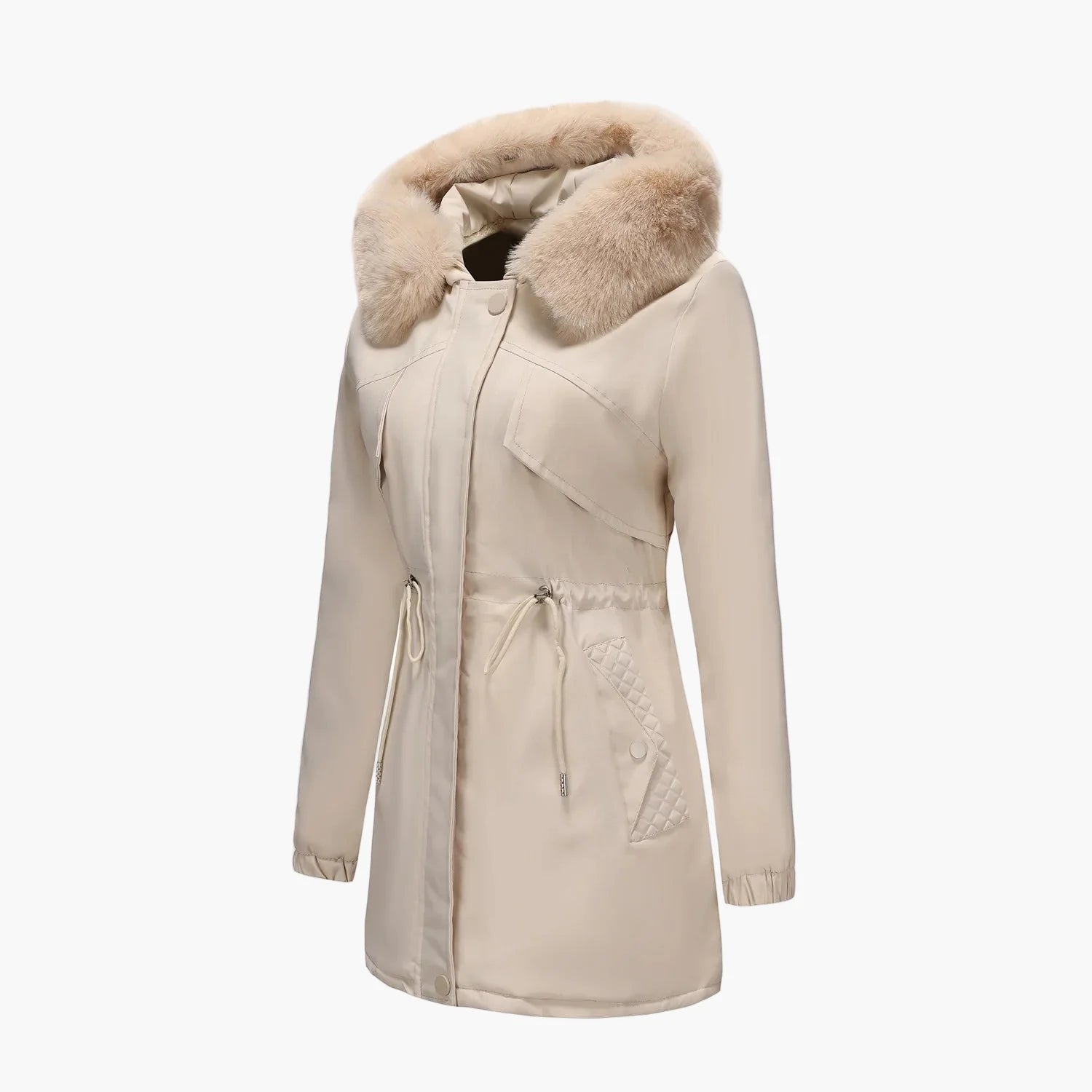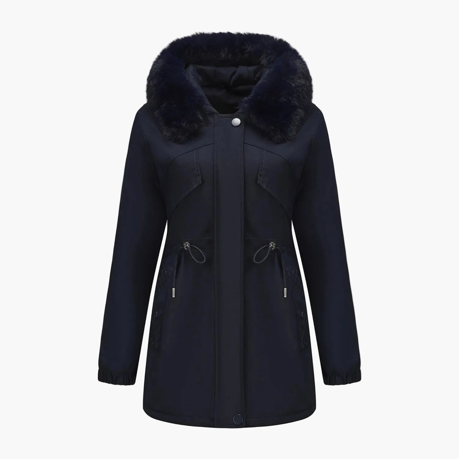 Manteau d'hiver à capuche pour femme, style élégant avec col en fausse fourrure