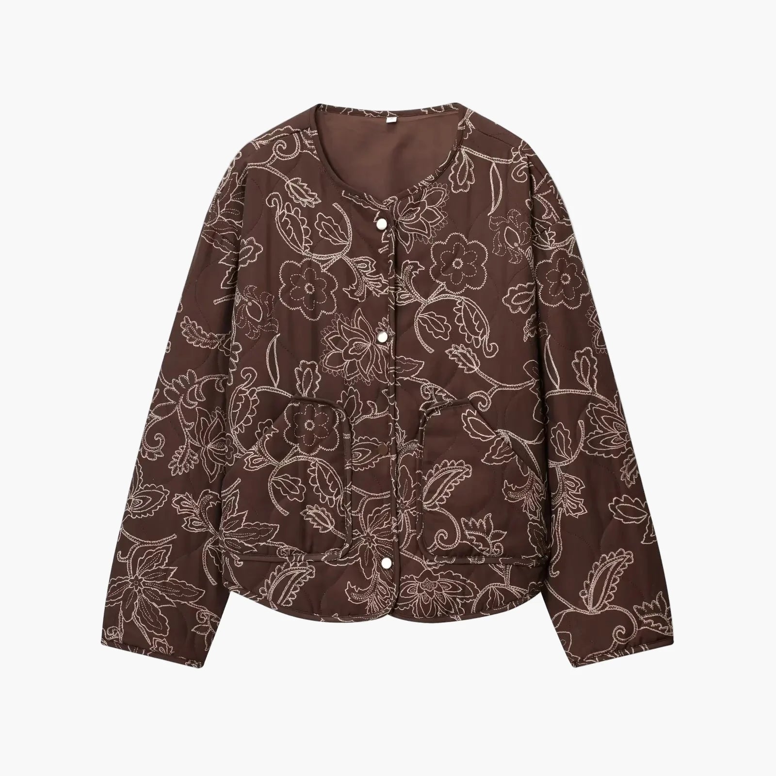 Veste matelassée décontractée femme style floral idéale pour l'automne et le printemps